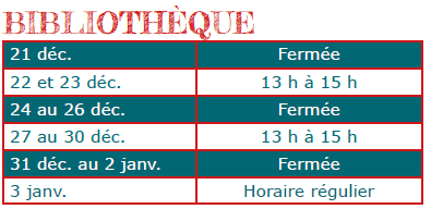 Horaire du Temps des Fêtes